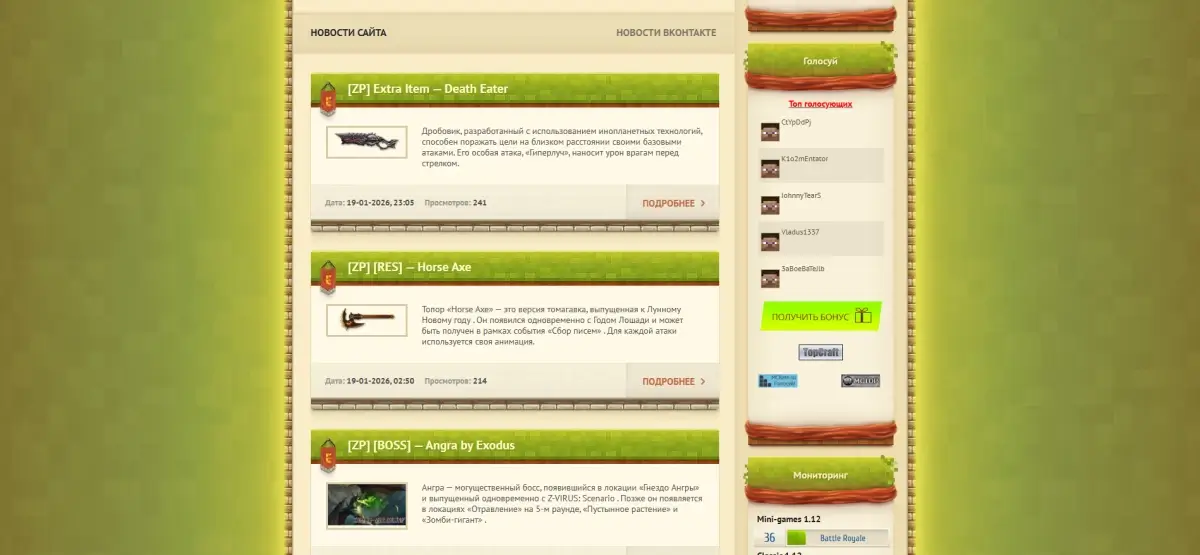 Включает мониторинг серверов, топ игроков, блок дискорд-сервера, блок новостей и личный кабинет, рабочий автоматический Slider.
