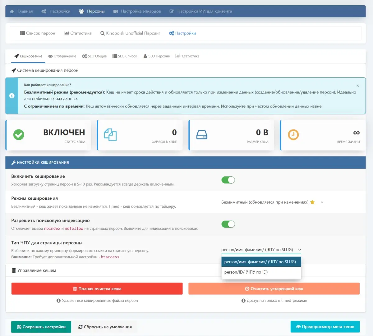 В отличие от типичных решений, модуль создаёт полноценную структурированную базу актёров, режиссёров и других персон: