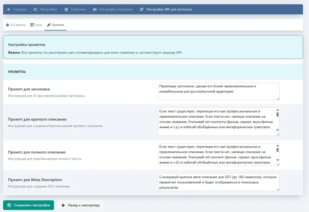 Устали тратить время на ручной импорт фильмов и сериалов, редактирование описаний и настройку SEO?