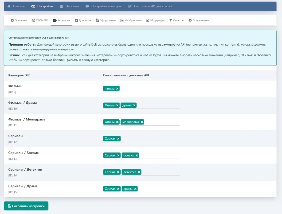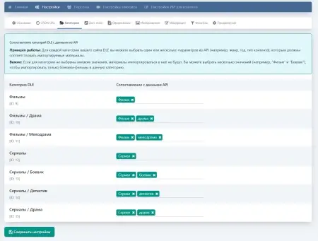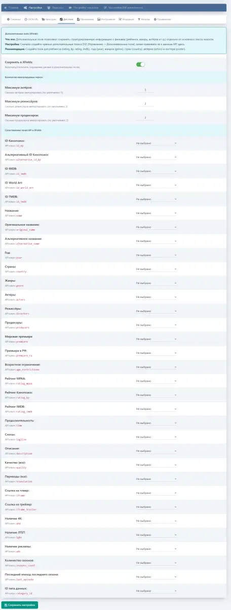 - Гибкая настройка XFields для точного сопоставления данных API с полями DLE.