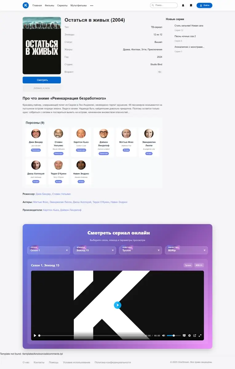 - Удобный интерфейс выбора сезонов, серий, качества и переводов.