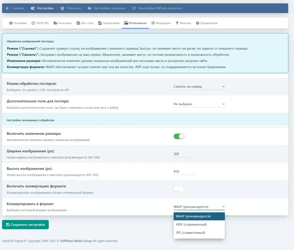 - Конвертация изображений в форматы WebP и AVIF и их оптимизация под SEO.