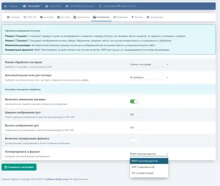 - Автоматическая загрузка постеров на сервер.