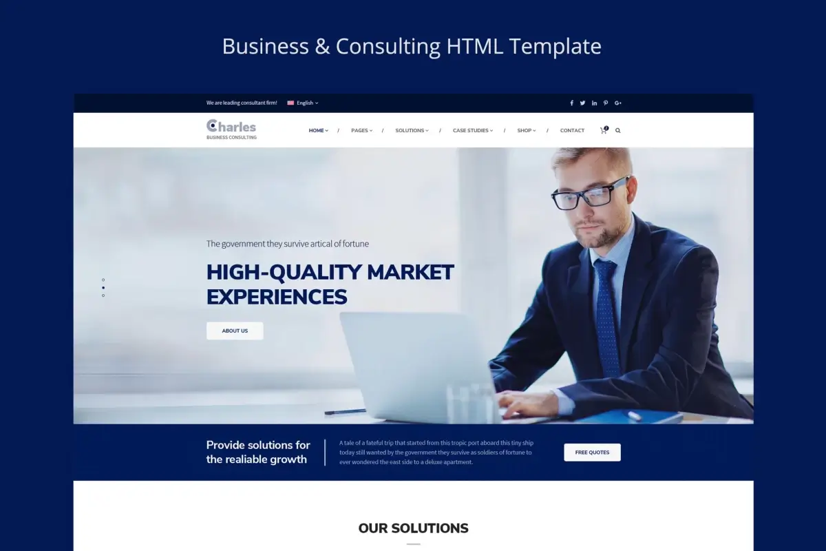Charles — многоцелевой HTML-шаблон, разработанный для бизнес-структур, консалтинговых агентств и корпоративных проектов. Он подходит для сайтов компаний, предлагающих деловые услуги, а также может использоваться как основа для многостраничных универсальных веб-ресурсов. Шаблон отличается современным и аккуратным дизайном, а его структура организована таким образом, чтобы облегчить редактирование и последующую настройку всех элементов.